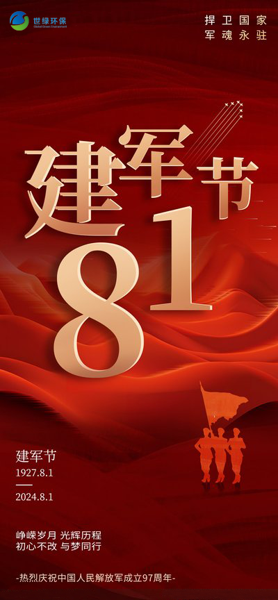 世綠環保熱烈慶祝中國人民解放軍建軍97周年!